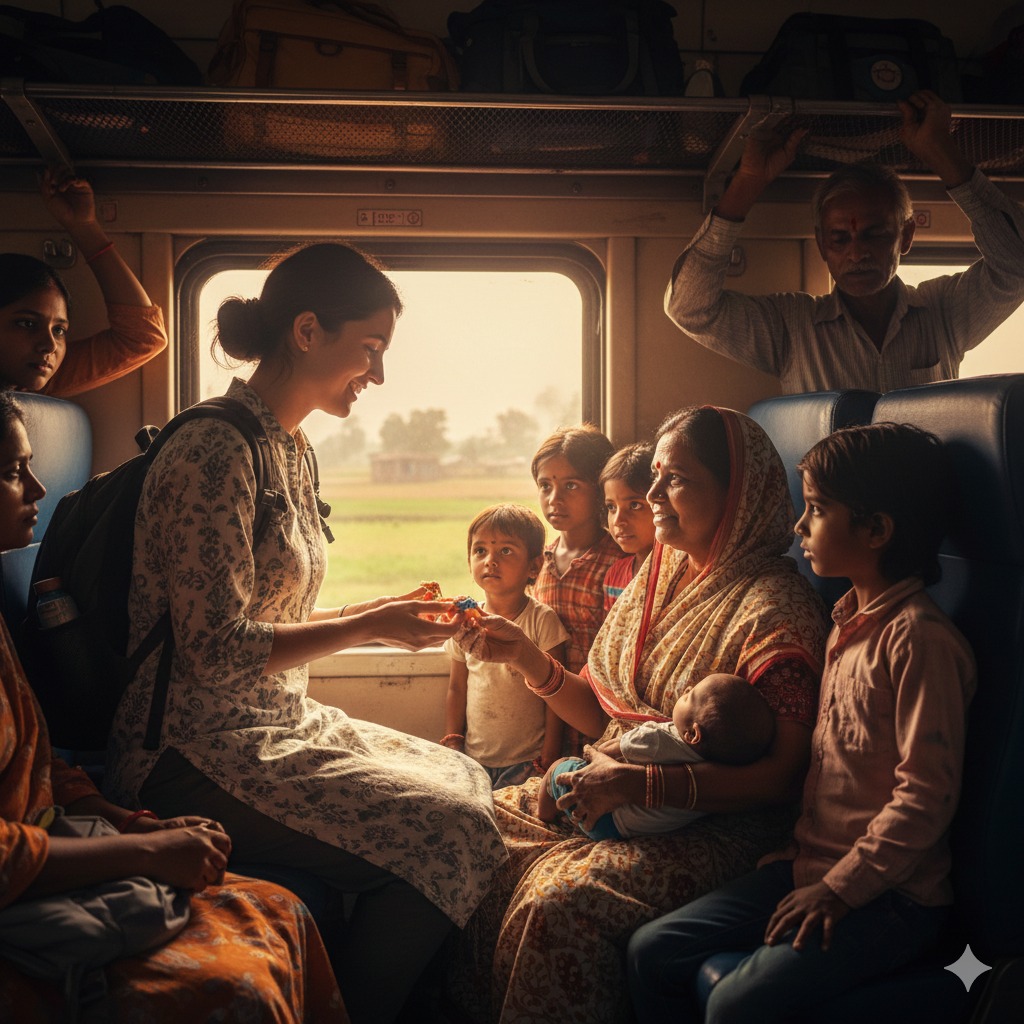 அவை எல்லாம் எனக்கு பீகாரின் முகவரியை சொல்லிக் கொண்டிருந்தன. ஆனால் அந்தப் பயணத்தின் உண்மையான முகவரி, ரயில் பெட்டிக்குள் எனக்காகக் காத்திருந்தது. அந்நியத்திலிருந்து அன்புக்குள் என் எதிரே அமர்ந்திருந்த அந்தப் பெண்.  முதல் பார்வையில் ஒரு சாதாரணப் பயணியாகத்தான் தோன்றினார். ஆனால் சில முகங்கள் இருக்கின்றன. அவை பார்த்தவுடனே, “அட, இவங்க நம்ம ஆள்” என்று மனது சொல்லிவிடும். அப்படித்தான் அவரும் இருந்தார்.